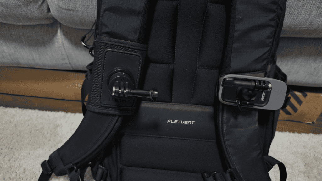 With clamp mounts, you’re constantly aware something is attached to your strap. The clamp teeth bite down hard, the camera sticks out awkwardly, and the whole setup makes the backpack feel heavier and unbalanced. Even when you’re not filming, it feels like something you should take off.