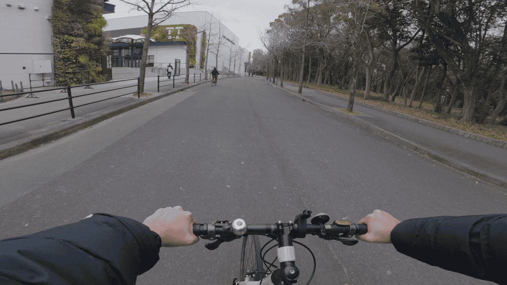 For walking footage, this setup worked better than expected. The limitation was tilt control. Without the ability to angle the camera up or down, framing quickly became restrictive, especially for cycling or situations where I wanted less ground and more of what was ahead.