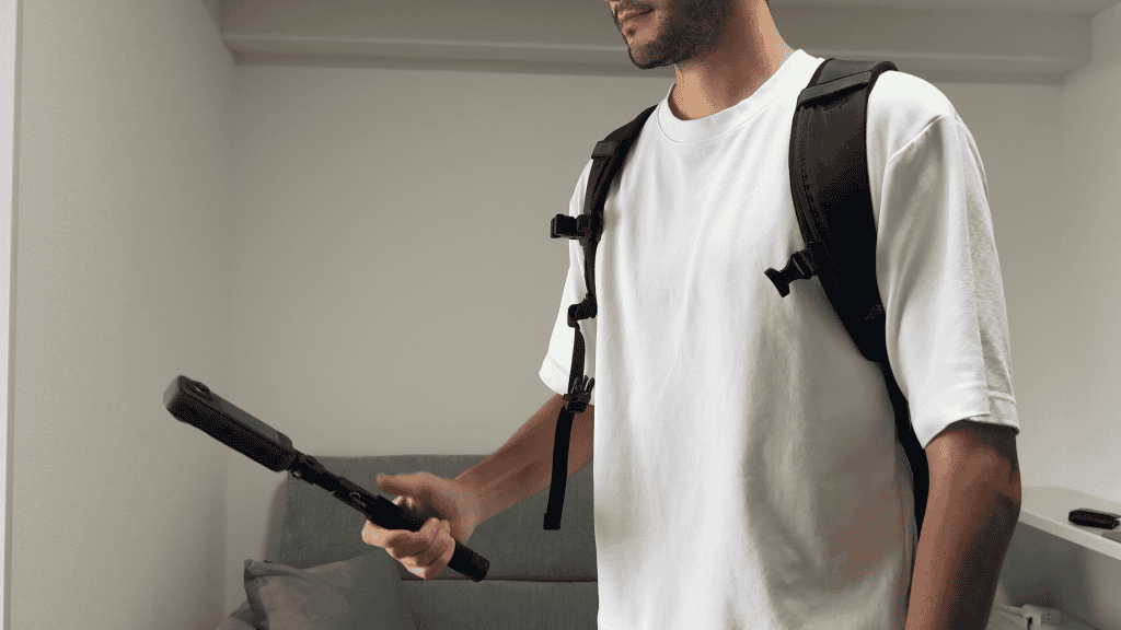 If you regularly switch between POV shots and handheld filming, a magnetic backpack holster makes life easier. It’s fast, intuitive, and designed around the way most people actually use 360 cameras.