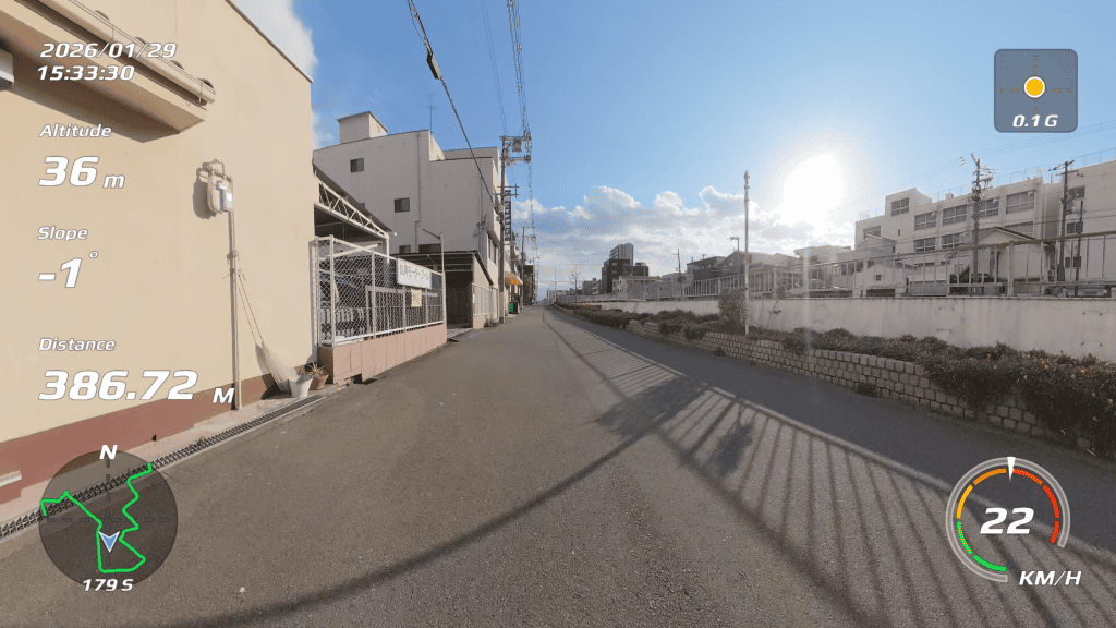 If you prefer editing on a desktop, this is frustrating. DJI does offer a desktop app called DJI Studio, and it even includes a dashboard section designed for telemetry overlays. Unfortunately, at the time of writing, it does not correctly retrieve GPS data from videos taken with the Osmo Action 6. Speed, distance, and elevation simply do not show up the way they do in the mobile app.