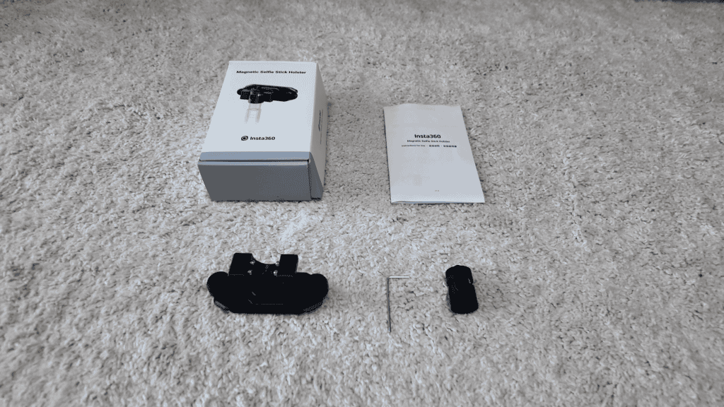 After the clamp is secured, you screw the quick-release part onto your selfie stick. At this stage, the camera angle may not be perfect, but Insta360 includes a small L-shaped wrench that lets you fine-tune the alignment. Once adjusted, the camera sits neatly against your chest, locked in place.